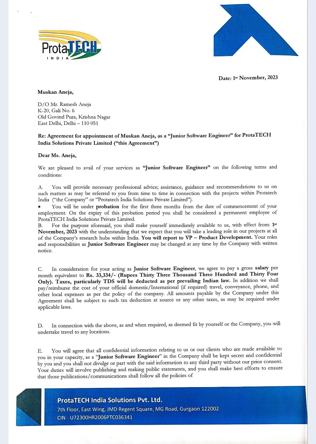 1st Nov 2023 to Present