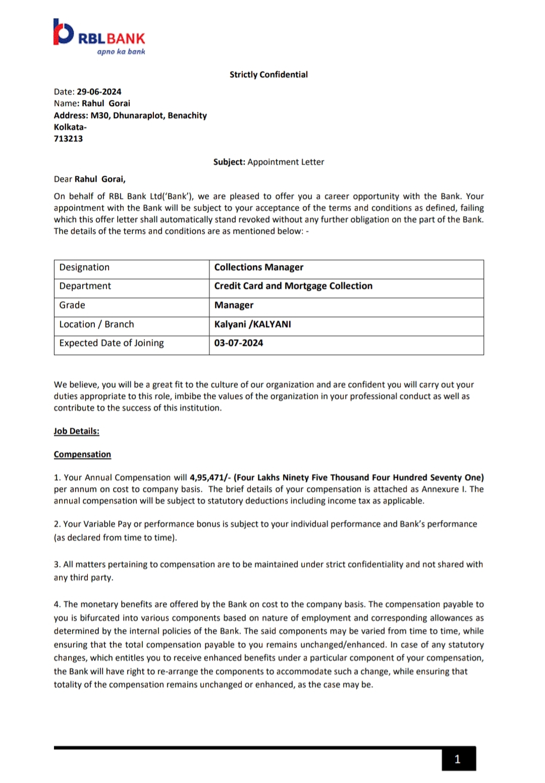Responsible and detail-oriented professional with good communication skills and the ability to learn banking work.