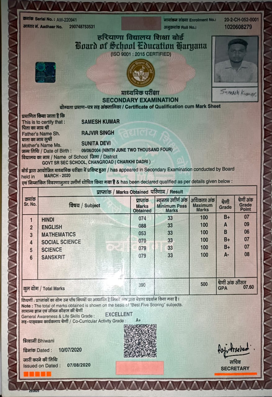 From : Govt Sr Sec School Changroad